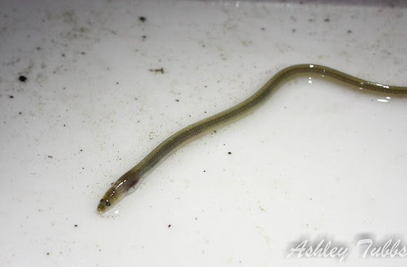 I have been looking through some books and can't find anything on a 'sand eel' in the gulf, the only ones are in the northeast Atlantic (called 'sand lances') but thats just how common names go though (A white perch down here is totally different than one in the north). And not all 'eels' are true eels, could clear it up if we could see the top fins. With what I can see my $.02 I think they are just american eels in the young stage coming in from the sea. The life cycle is that they come in as 'glass eels' (I guess to camoflage them from predators) and once they get to an estuary they begin to grow and change colors (at a young age they are brown on top and light on bottom so kinda goes with what the previous poster was saying about the brown on top and white on bottom?). They just hang out in the sand getting ready for their travels upstream (maybe why they are sand eels?) young ones on the bottom kinda fit the bill |